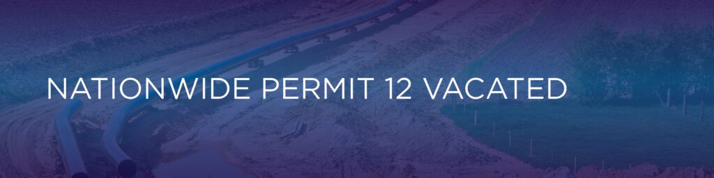 On April 15, 2020, a Montana District court ruled to vacate the use of Nationwide Permit 12—Utility Line Activities (NWP 12) at the national level. Although the case centered on a specific oil and gas pipeline project, the vacatur applied nationwide without any specificity to pipeline type. This meant NWP 12 was unavailable for authorizing water lines, sewer lines and several other activities allowed under NWP 12.